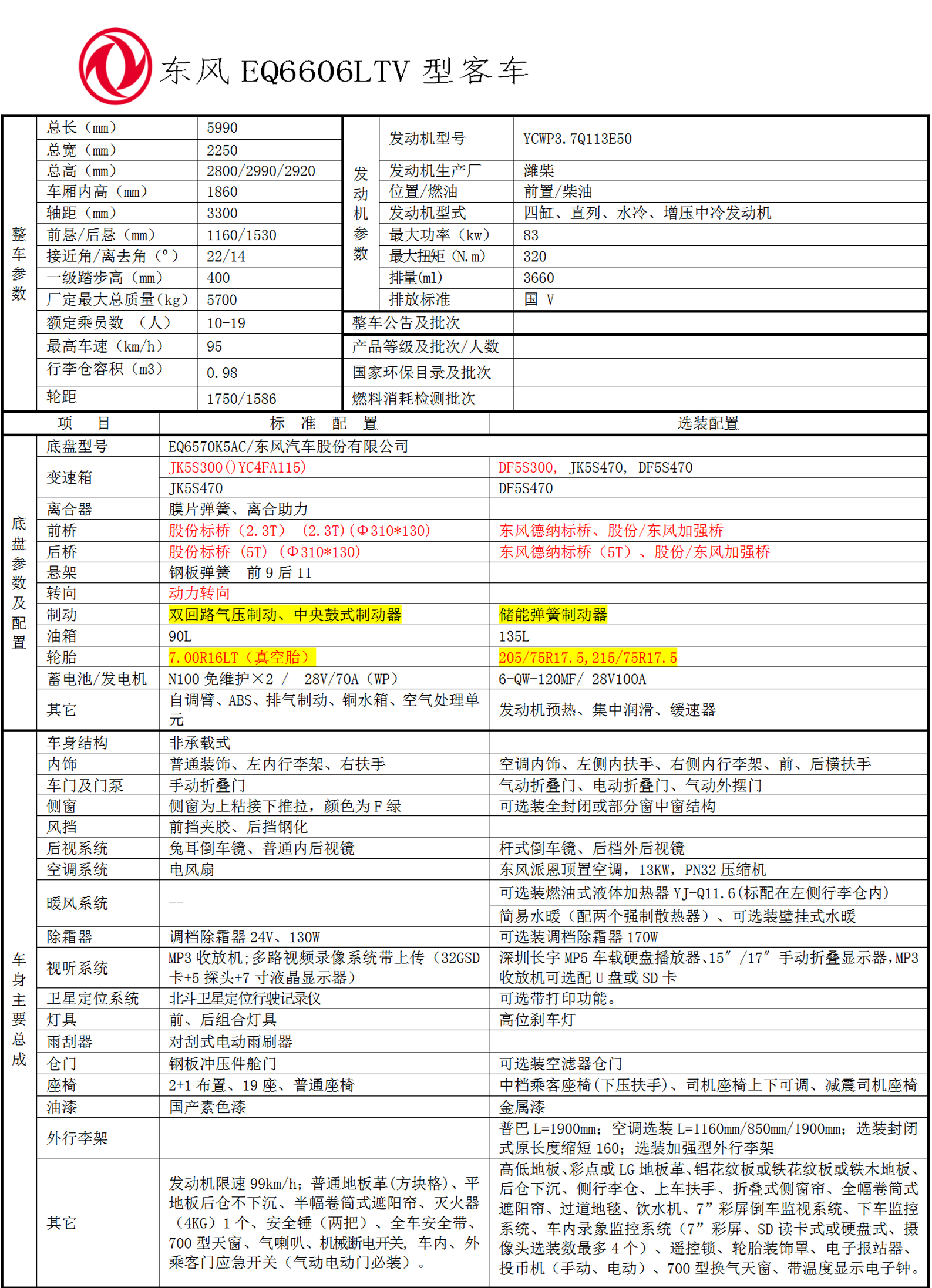 东风牌四驱客车17-19座5.9m巴士 颜色可定制