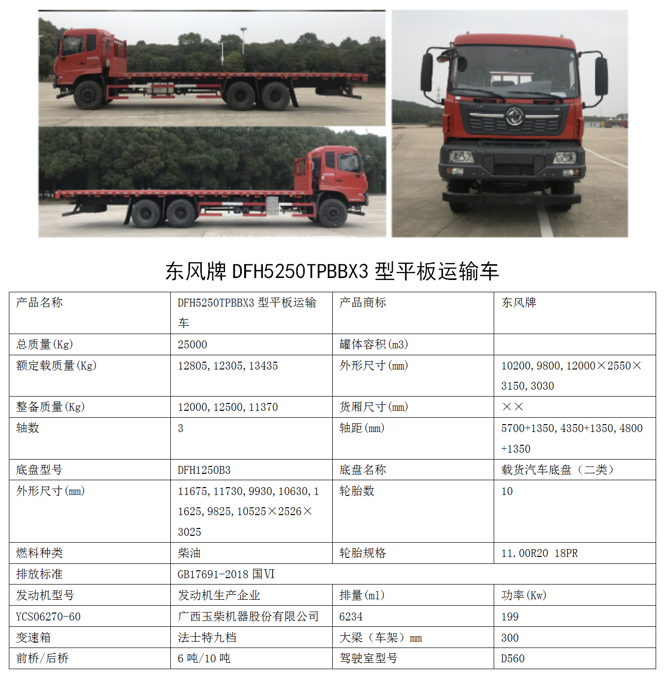 东风国六6.2m平板载货