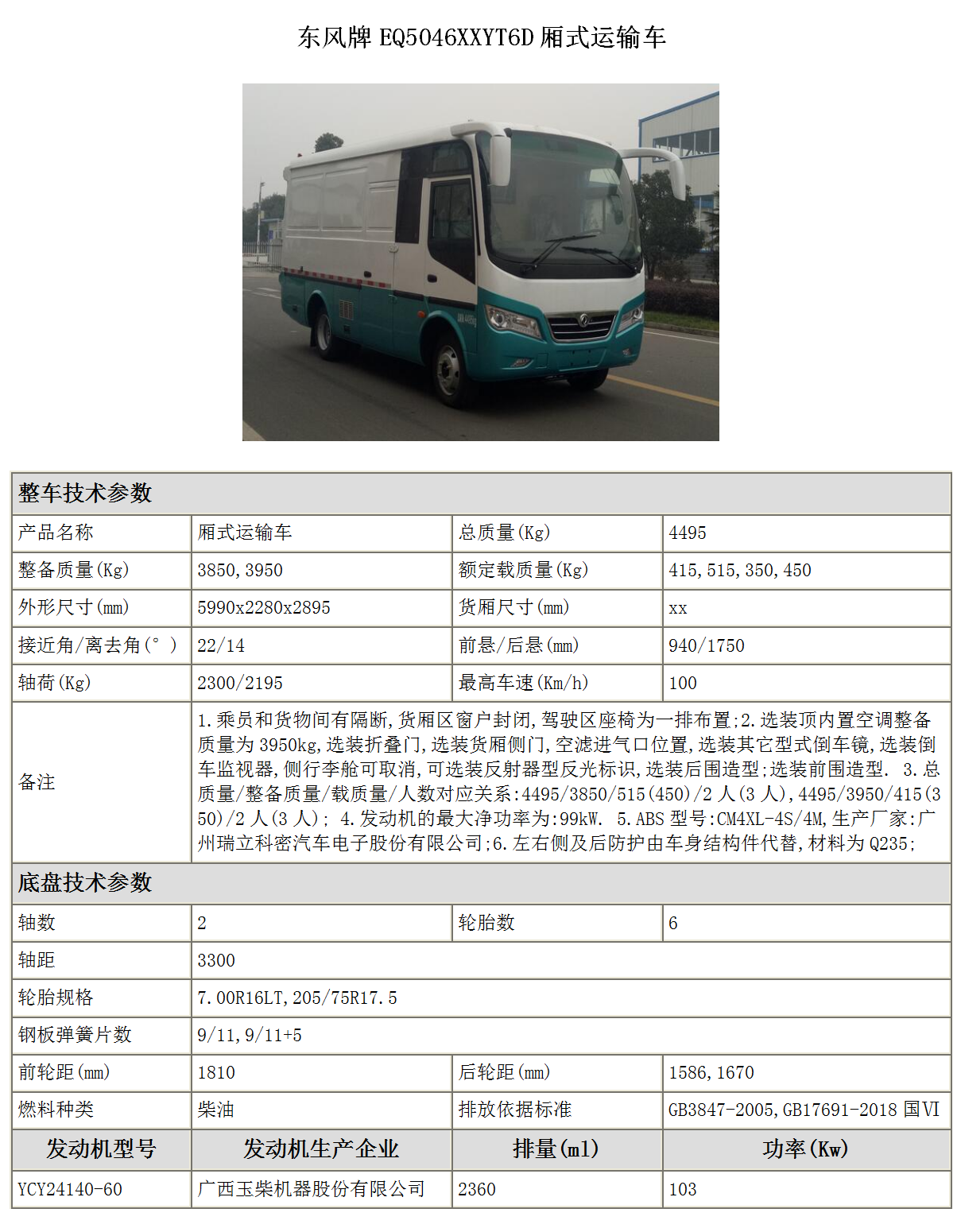 东风5.9m蓝牌4X2厢式货车 国六高效承载