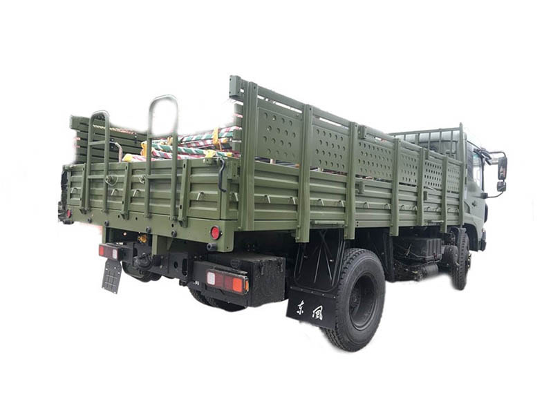 •发动机采用低温预热装置,燃油加热系统,超级电容,180A`H低温储电池,可在-41°C低温环境下启动。•供油系两个邮箱,主油箱容积160L,副油箱容积为80L,续驶里程1200KM。•驾驶室采用二级踏步,驾驶室内设两个枪架,驾驶室前段装有1个防空灯,车架后端装有两个防空灯,前大灯及雾灯及驾驶室后窗加装有护网。•车厢为高栏板铁木混合结构,两侧边板不可开启,可翻转为简易长排坐凳,配备两点式安全带,后板可翻下,装有可翻转上车爬梯。车厢中部和后部各装有两根可调预紧力的链条。车厢底板装有固定锹,镐等土木工具的工具箱。采用不准组合式蓬杆结构,蓬杆可集中放置。•采用4mm钢铁压制成的保险杠;采用整体式可翻转前防撞装置。•机油桶,水桶,防滑链,篷布,工具箱等附件,适应部队野外使用及冰雪路面行驶要求。•装配牵引连接装置:牵引钩(前/后),电连接器,挂车制动阀,气制动连接器。•应急电源插座,侧标志灯总成,后尾灯总成(LED)。