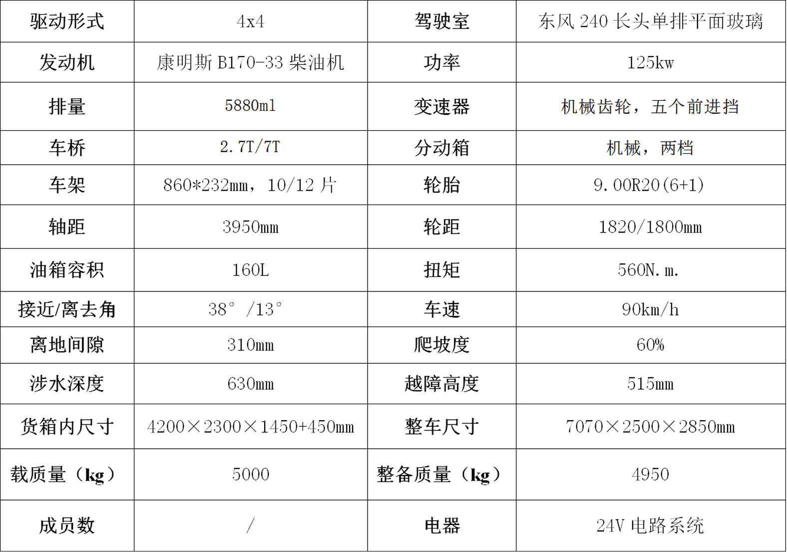 平头排半六驱越野载货汽车